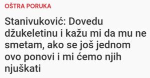 A danas isti taj Draško Stanivuković, kada govori o policijskom psu, bez trunke zadrške izgovara: „dovedu džukeletinu“ i onda još dodaje da će „i mi njih njuškati“. Tu više nema nikakve zabune. To je ogoljen prezir prema životinjama, upakovan u bahatost i prostakluk, izrečen javno i bez imalo stida.