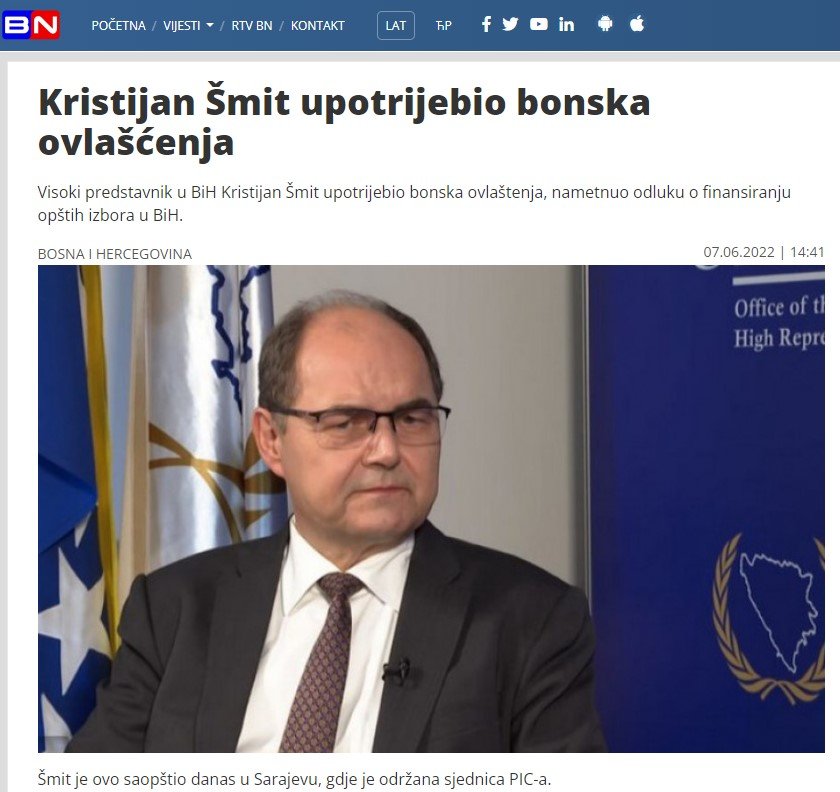 Naime, iako Republika Srpska zvanično ne priznaje Kristijana Šmita za visokog predstavnika, za BN portal to ne važi. Milioni su ipak draži od odanosti narodu i narodnoj volji.
