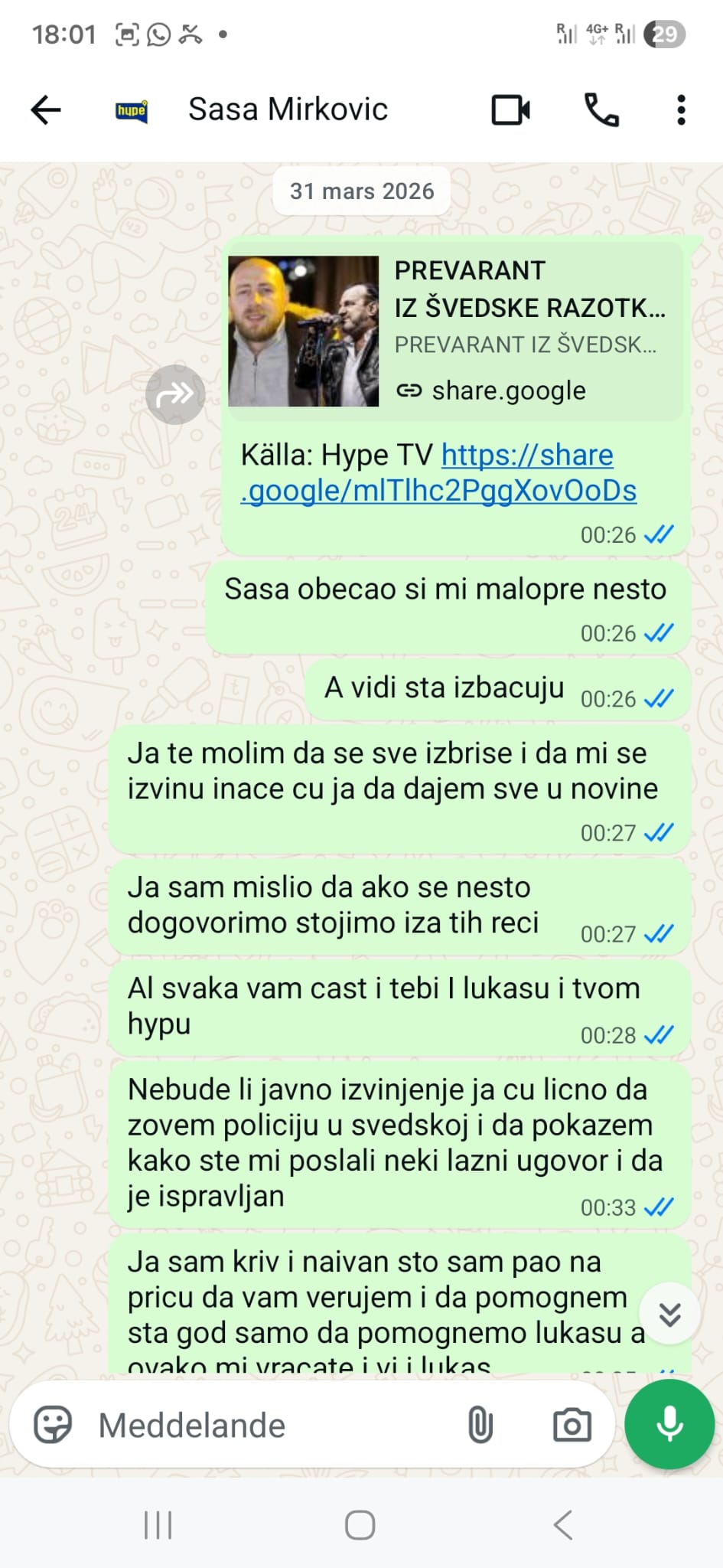 Slučaj propalog nastupa Ace Lukasa u Švedskoj dobio je sasvim drugo lice nakon što je redakciji Vijesti365 organizator Anes Balićevac dostavio poruku i kompletnu prepisku iz koje se jasno vidi šta se dešavalo iza kulisa.