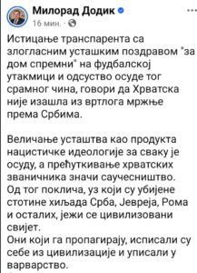 namjerno prećutkuje činjenicu da je Dodik već javno reagovao na nedavna dešavanja kada su pripadnici navijačke grupe