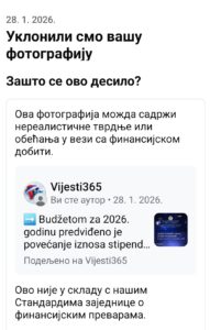 Objava koja je prenosila zvanično saopštenje Vlade Republike Srpske o povećanju studentskih stipendija uklonjena je sa društvene mreže Facebook, nakon što je Meta njen sadržaj pogrešno označila kao „nerealnu tvrdnju“.